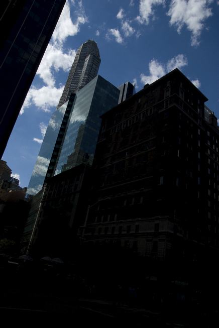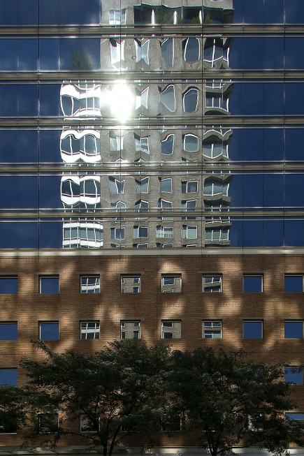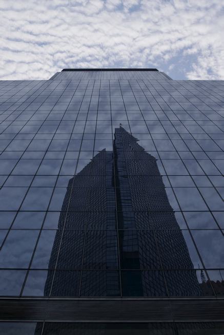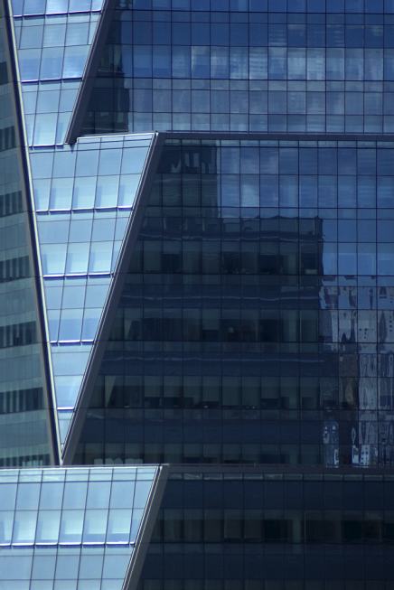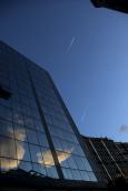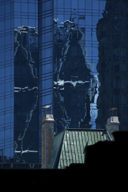 A mixture of transparent glass, shiny metal, gray cement, blue sky and cotton clouds represents the basic material of the photos. Black, shady masses, with underexposed shootings and the difference of brightness of the straightly illuminated and shadowy surfaces, which get over of the boundaries of photosensitive material, shape the structural forms. Reflections of the sky and the city transform the sense of the space and redefine the relation between the buildings and the environment, composing the urban mirages.