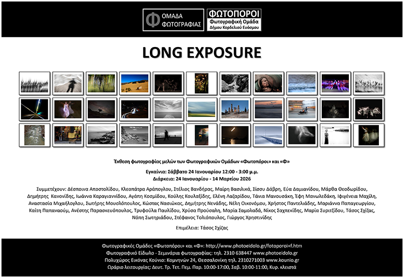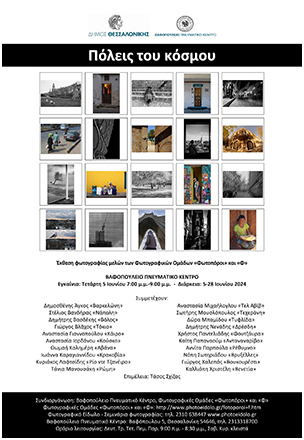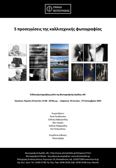 «ΦΩΤΟΠΟΡΟΙ» ΦΩΤΟΓΡΑΦΙΚΗ ΟΜΑΔΑ «Φ» Η Φωτογραφική Ομάδα «Φ» αποτελεί μια νέα δραστήρια ομάδα φωτογραφίας, που προέκυψε κατά τη διάρκεια των σεμιναρίων που πραγματοποιήθηκαν στον Πολυχώρο Εικόνας Κούνιο από τον Τάσο Σχίζα, από τον Οκτώβριο του 2011 ως σήμερα. Αριθμεί αρκετά μέλη που παρακολουθούν τα διάφορα σεμινάρια, ενώ παράλληλα λειτουργεί Λέσχη φωτογραφίας με μηνιαίες συναντήσεις των μελών της. Έχει πραγματοποιήσει πολλές ομαδικές εκθέσεις, ενώ μέλη της έχουν κάνει ατομικές εκθέσεις και έχουν συμμετάσχει σε άλλες ομαδικές εκθέσεις / παραγωγές. Διοργανώνει σε συνεργασία με άλλες ομάδες και φορείς το Contrast / Αντίθεση: Φεστιβάλ Φωτογραφίας Θεσσαλονίκης.